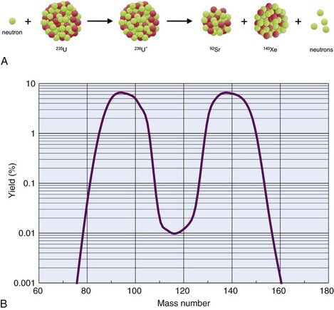 다음은 U-235의 fission fragment를 나타낸 것이다. 2 ~ 3개의 조각이 생성될 수도 있으나 많은 경우 2개로 분열되고, 같은 질량수로 나누어지기보다는 다른 질량수로 분열되는 경우가 많다. 다만 fission product의 비율은 한 종류당 8%를 넘지 않는 범위 내에서 결정된다. 이렇게 생성된 fragment는 분열로 인해 방출되는 대부분의 에너지를 운동에너지로 가져간다.