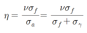 핵분열의 지속성을 보장하려면 유입된 중성자의 수만큼 새로운 중성자가 생성되어야 한다. 분열당 발생하는 중성자의 수를 ν로 쓰고, 이들 가운데 흡수되는 중성자 대비 생성되는 중성자의 수를 재생계수(reproduction factor) η라 하며 다음 식으로써 표현된다.