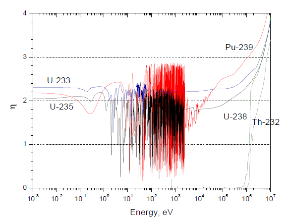 η는 핵종과 중성자 에너지에 따라 값이 변한다. 다음 그래프를 보자.