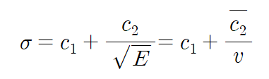 앞쪽의 상수 c_1은 scattering cross section에 해당하고, 뒤쪽의 반비례항은 capture cross section이다. 일반적으로 빠르게 지나가는 중성자는 대상 핵에 잘 포획되지 않는다.