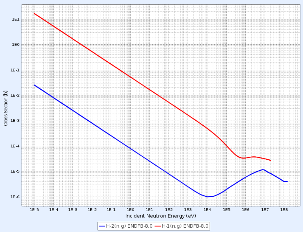 다음은 H-1과 H-2(중수소)의 capture cross section을 나타낸 것이다.