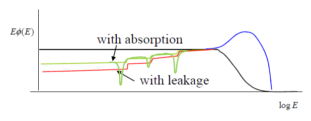 식을 바꾸어, flux와 E의 곱을 대상으로 그래프를 그리면 해당 범위에서 상수로 나타난다. 만약 fission에 의한 생성을 포함하면 fission neutron의 스펙트럼 형태와 유사한 그래프가 나타난다.