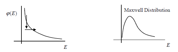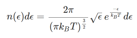 에너지에 대해 나타낸 Maxwell-Boltzmann distribution은 다음과 같다(이와 관련된 내용은 본문 최상단에 링크된 글에 포함되어 있다).