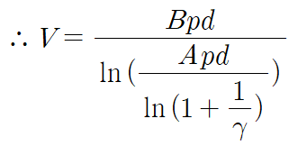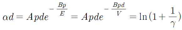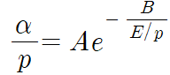 이로부터 Townsend 1st ionization coefficient에 대한 식의 형태를 찾을 수 있다.