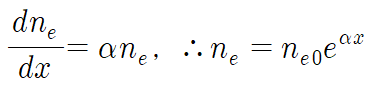 이때의 alpha를 Townsend 1st ionization coefficient라 부르며, 단위길이당 전자가 생성되는 수를 의미한다.