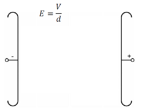 다음처럼 일정한 전기장이 걸린 공간을 생각해보자.