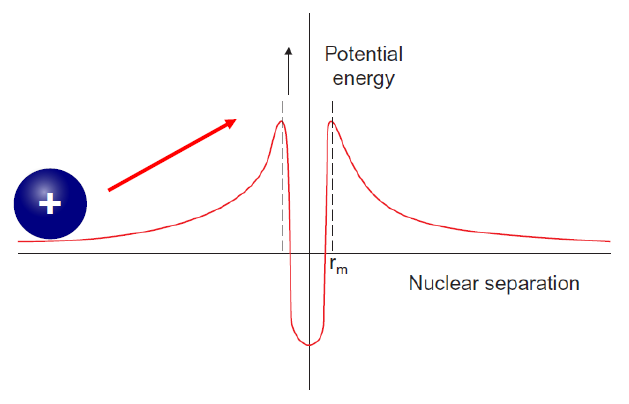 핵융합 반응은 양(+)으로 대전된 두 입자를 결합하는 과정을 포함하고 있다. 이를 위해서는 전자기적 척력을 핵자 간 강한 핵력이 이겨내는 지점까지 가까이 둘 필요가 있다. 핵력이 우세해지는 지점부터는 자연스럽게 결합이 이루어진다.