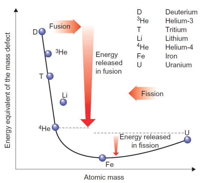 에 의해 계산할 수 있다. 핵반응 과정에서 발생하는 질량결손이 에너지로 방출되는 것이다. 이는 분자 간 화학반응으로부터 얻어지는 화학에너지에 비해 매우 큰 값을 가지고 있다.
